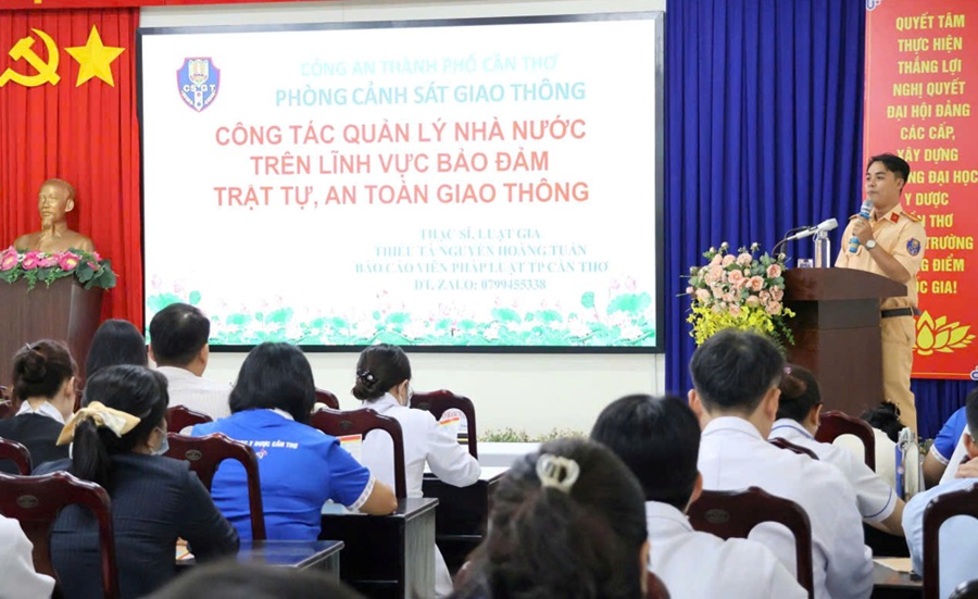 Đồng chí Nguyễn Hoàng Tuấn, báo cáo viên phòng Cảnh sát giao thông, Công an thành phố Cần Thơ