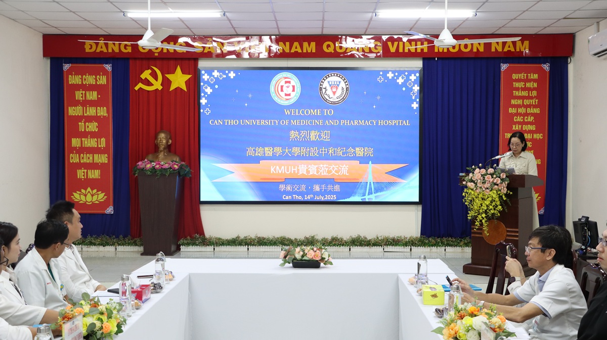 Ngày 14 tháng 7 năm 2025, Bệnh viện Trường Đại học Y Dược Cần Thơ đã vinh dự đón tiếp và làm việc với đoàn công tác đến từ Bệnh viện Đại học Y Cao Hùng – Đài Loan (Trung Quốc). Buổi gặp gỡ là dịp để hai bên tiếp tục thắt chặt mối quan hệ hợp tác đã được xây dựng trong thời gian qua, đặc biệt sau chuyến thăm và làm việc của đoàn cán bộ Bệnh viện Trường Đại học Y Dược Cần Thơ đến Cao Hùng vào năm 2024.