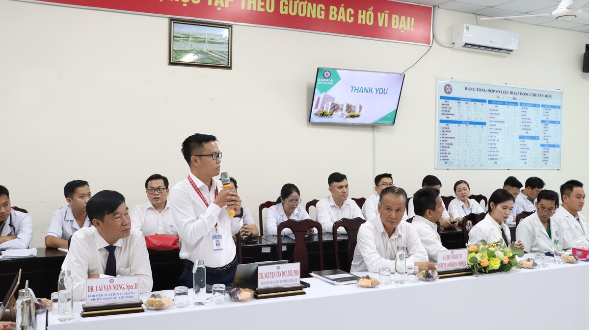 TS.BS Nguyễn Tấn Đạt-Phó Trưởng Khoa Y tế công cộng Trường Đại học Y Dược Cần Thơ phát biểu tại buổi làm việc.