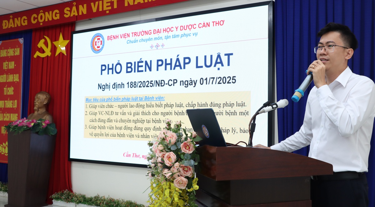Nhằm kịp thời cập nhật các quy định pháp luật mới và đảm bảo quyền lợi của người bệnh, Bệnh viện Trường Đại học Y Dược Cần Thơ tổ chức Hội thảo tập huấn về Nghị định số 188/2025/NĐ-CP của Chính phủ và hướng dẫn các nội dung mới trong thanh toán chi phí khám chữa bệnh, thuốc bảo hiểm y tế.