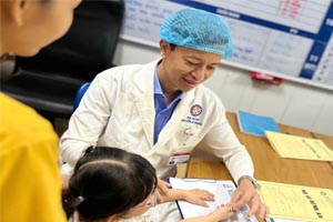 BS. Mobin Soyed đang khám, kiểm tra chức năng vận động cho bệnh nhi