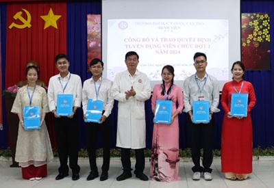 Ngày 03 tháng 2 năm 2025, Bệnh viện Trường Đại học Y Dược Cần Thơ tổ chức công bố và trao quyết định tuyển dụng viên chức đợt 2 năm 2024. Tại buổi trao quyết định tuyển dụng viên chức có sự tham dự của BS.CKII Lại Văn Nông, Bí thư Đảng ủy, Giám đốc Bệnh viện; PGS.TS.BS. Nguyễn Thành Tấn, Phó Bí thư Đảng ủy, Phó Giám đốc Bệnh viện; PGS.TS.BS. Võ Phạm Minh Thư, Phó Bí thư Đảng ủy, Phó Giám đốc Bệnh viện và ThS. Nguyễn Văn Tám, Phó Giám đốc Bệnh viện; Lãnh đạo các khoa, phòng, trung tâm thuộc Bệnh viện và sự có mặt của 23 viên chức trúng tuyển kỳ xét tuyển dụng đợt 2 năm 2024.