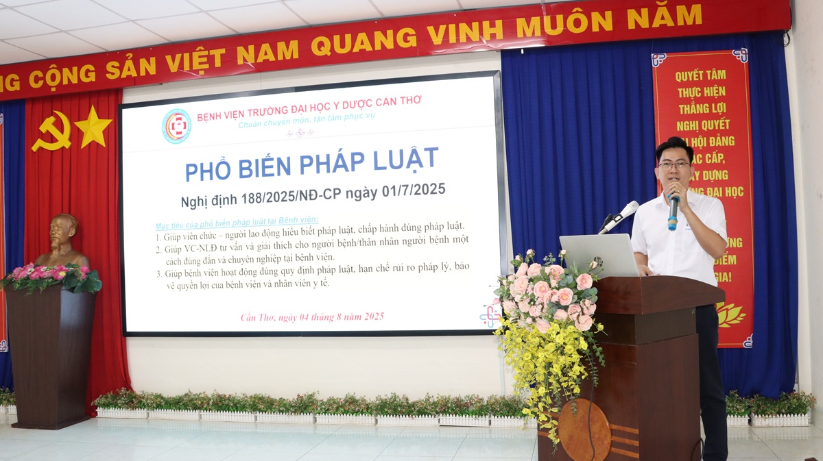 Nhằm kịp thời cập nhật các quy định pháp luật mới và đảm bảo quyền lợi của người bệnh, Bệnh viện Trường Đại học Y Dược Cần Thơ tổ chức Hội thảo tập huấn về Nghị định số 188/2025/NĐ-CP của Chính phủ và hướng dẫn các nội dung mới trong thanh toán chi phí khám chữa bệnh, thuốc bảo hiểm y tế.