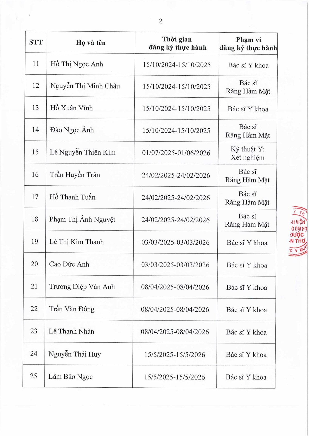 Danh sách người thực hành khám bệnh, chữa bệnh, cập nhật đến ngày 19/8/2025.