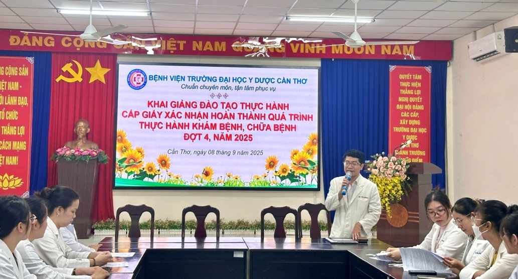 Sáng ngày 08 tháng 9 năm 2025, Bệnh viện Trường Đại học Y Dược Cần Thơ đã tổ chức Lễ khai giảng khóa đào tạo thực hành và cấp giấy xác nhận hoàn thành quá trình thực hành khám bệnh, chữa bệnh – đợt 4, năm 2025.