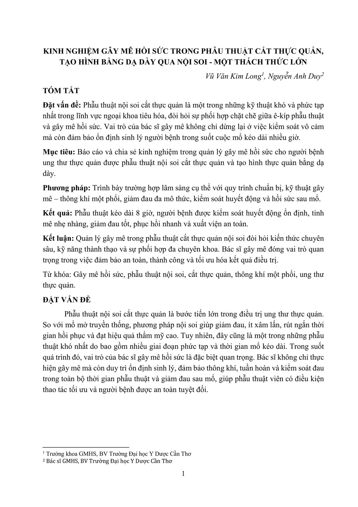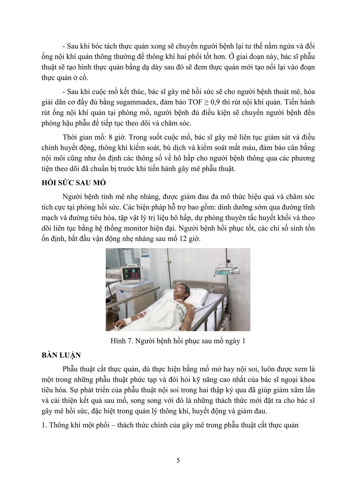 KINH NGHIỆM GÂY MÊ HỒI SỨC TRONG PHẪU THUẬT CẮT THỰC QUẢN, TẠO HÌNH BẰNG DẠ DÀY QUA NỘI SOI - MỘT THÁCH THỨC LỚN.