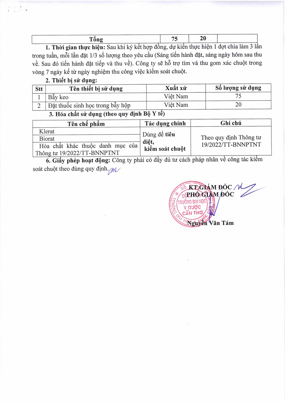 Về việc mời giá chào giá cung cấp dịch vụ diệt chuột cho Bệnh viện.