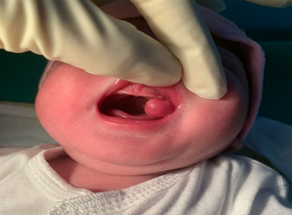 Đây là một trường hợp u nướu bẩm sinh (congenital epulis), là u lành tính vùng miệng hiếm gặp ở trẻ sơ sinh. U nướu bẩm sinh được xem là một quá sản sau chấn thương, viêm tại chỗ hoặc là một dạng thoái triển hơn là một khối u thực sự.