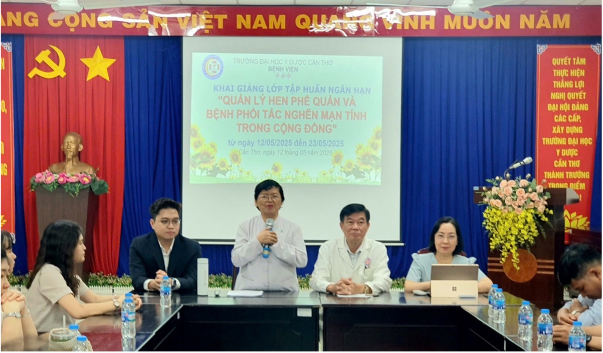 PGS.TS.BS Lê Thị Tuyết Lan phát biểu khai giảng lớp tập huấn “Quản lý hen và COPD trong cộng đồng”; sau buổi lễ, giảng viên và học viên chụp ảnh lưu niệm tập thể.