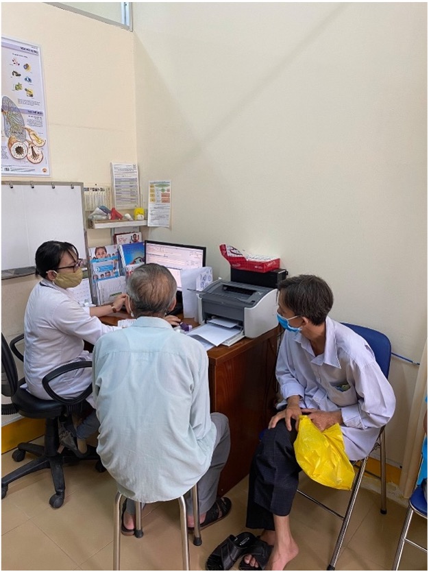 ThS.BS Dương Thị Thanh Vân và ThS.BS Nguyễn Ngọc Thành Long đang thực hiện công tác khám, tư vấn và điều trị bệnh lý hô hấp tại phòng khám chuyên khoa của đơn vị.