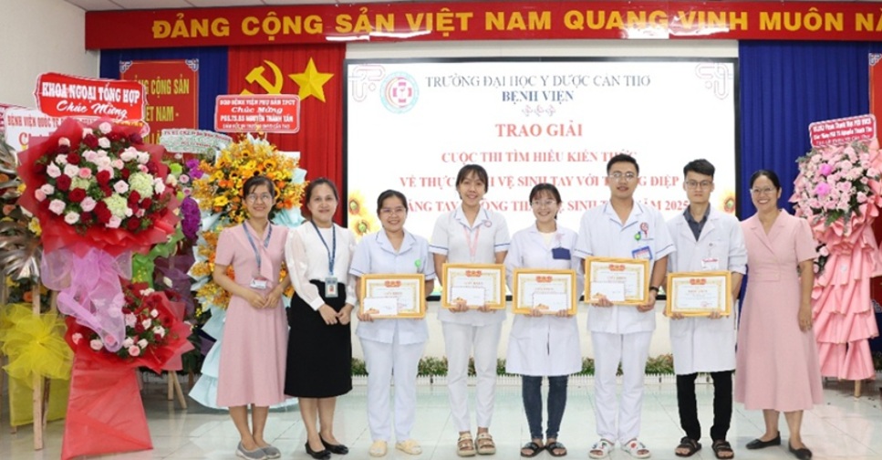 Các cá nhân đạt giải trong Cuộc thi tìm hiểu kiến thức về thực hành vệ sinh tay năm 2025 tại Bệnh viện Trường Đại học Y Dược Cần Thơ