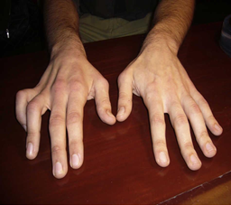Bệnh liên quan mật thiết đến việc thường xuyên cúi gập cổ trong thời gian dài. Bệnh thường dẫn đến tổn thương vận động chủ yếu ở các cơ cẳng tay trước và bàn tay. Triệu chứng lâm sàng gồm tổn thương teo cơ tương ứng các rễ C7-C8 và T1, thường là tổn thương 1 bên, hoặc hiếm hơn là 2 bên (nhưng không đối xứng).