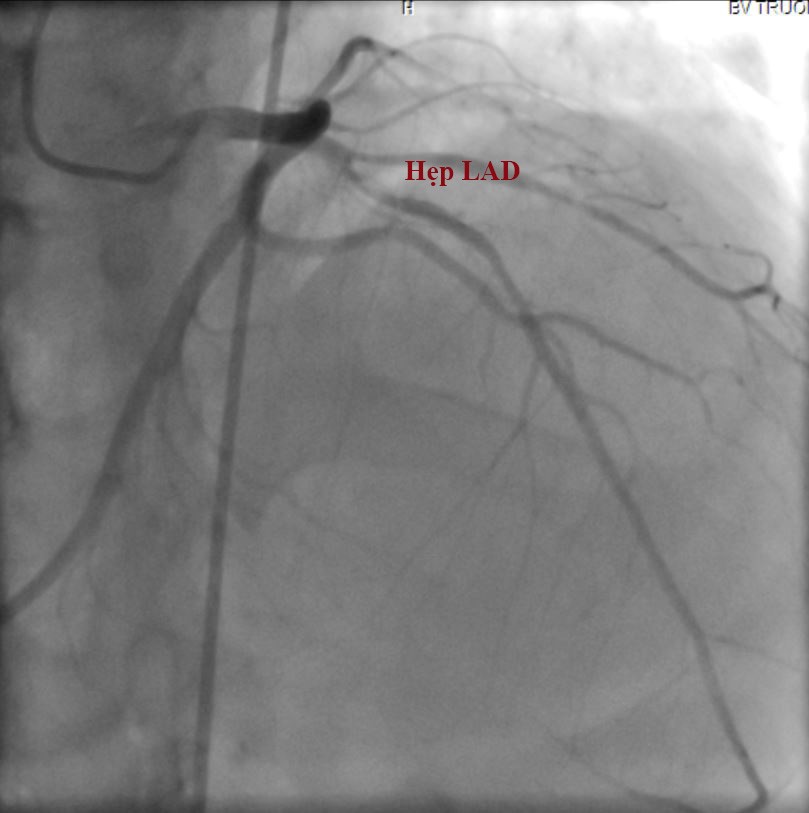nhánh động mạch mũ (LCx). Hẹp nặng 80% đoạn gần và 50% đoạn giữa của động mạch